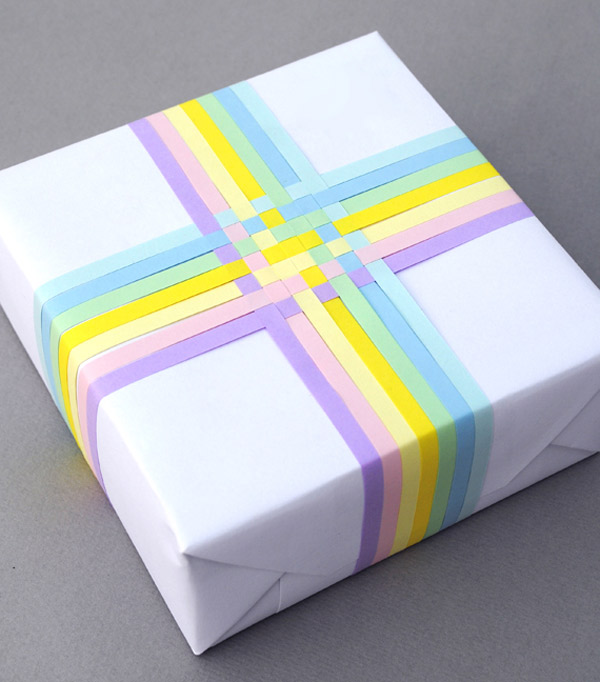2. Te bastará un papel blanco porque el encanto reside en las cintas entrelazadas.