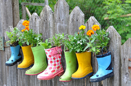 1. Recopilar botas de agua, pintarlas y ponerles tierra adentro. Serán perfectas para colgarlas en la cerca del patio.