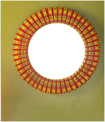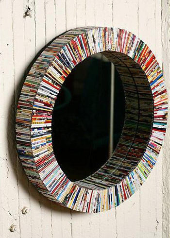 7. Usando tubos de cartón. En este caso, después de poner cada uno de los círculos de cartón, tendrás que aplicarle un spray plateado y colocarle, meticulosamente, pequeñas piedrecillas brillantes. Te podrá parecer un trabajo titánico pero este tipo de espejos en la tienda te puede costar hasta 300 euros.