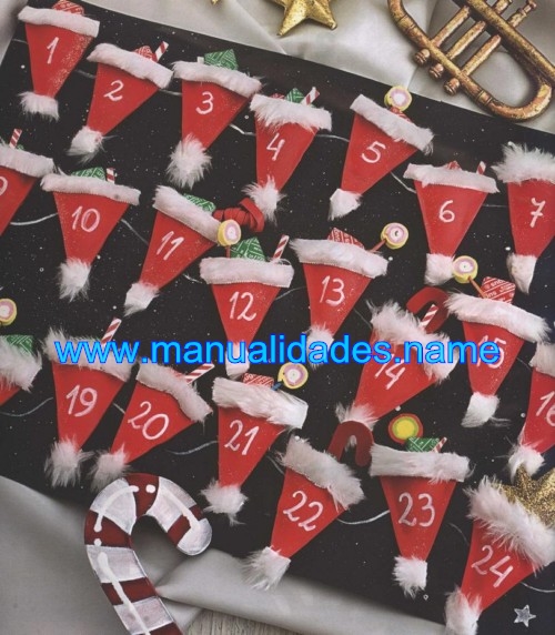Calendario Navideño en Goma EVA Este es un calendario de cuenta regresiva hacia la navidad. La idea es poner golosinas en los gorritos y que los niños vayan sacando todos los días para saber cuanto falta para la Navidad. *Materiales: Goma eva roja Goma eva azul oscura Peluche blanco Guata Silicona Cemento de contacto Tijera … Read more