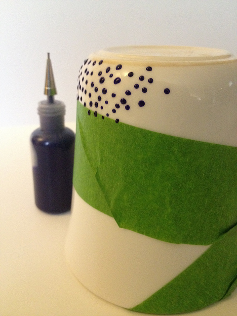 Paso 2: Con la pintura, comienza a realizar pequeños círculos o lunares. Casi siempre este tipo de pintura viene con un dispensador. Si no lo tienes, podrás echarle mano al pincel.