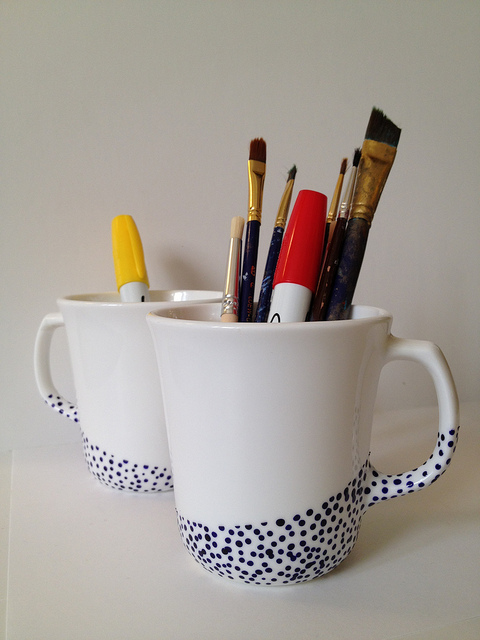 En este caso han tomado las tazas como portalápices, también es otra opción.