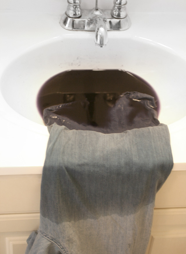 Paso 3: Disuelve el tinte más claro en agua. Ahora coloca la camisa a la altura que desees crear el nuevo color. Déjala por unos 10 minutos, sácala y lávala.
