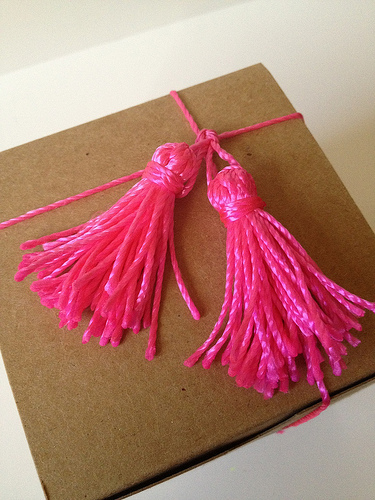 Ahora tendrás una borla, no te queda sino hacer la segunda y envolver el regalo.