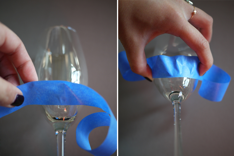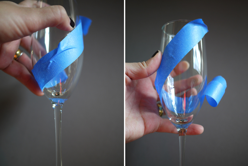 Paso 1: Corta un pedazo de cinta de aproximadamente 6 pulgadas. Centra la cinta sobre la base de la copa y pega el borde inferior contra el cristal.