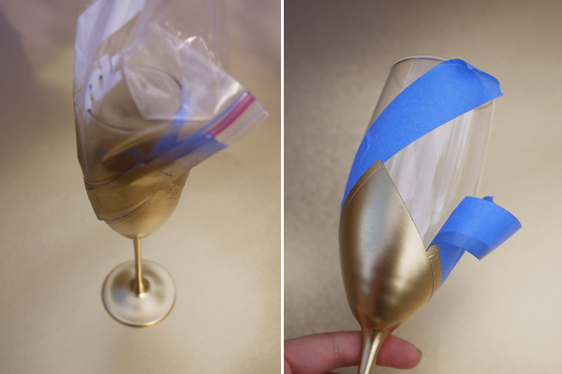 Paso 4: En la mitad de la cinta que no has pegado, coloca el nylon. De esta forma protegerás la parte de la copa que no deseas pintar.