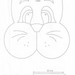 2 – Para hacer la vincha de León: marca y recorta en goma eva las piezas de la cabeza del león. Recorta en goma eva naranja un rectángulo de 16 cm x 20 cm, dobla por la mitad del lado más corto y con tijera corta tiras de 1 cm de ancho para forma la melena del león. Arma la cabeza ubicando los ojos, el hocico, las orejas y dibujar los bigotes con marcador negro. Pega la melena en la parte posterior de la cabeza. Corta una tira de goma eva naranja de 4 cm x 40 cm, en la mitad de la tira pegar la cabeza y en los extremos colocar el broche.